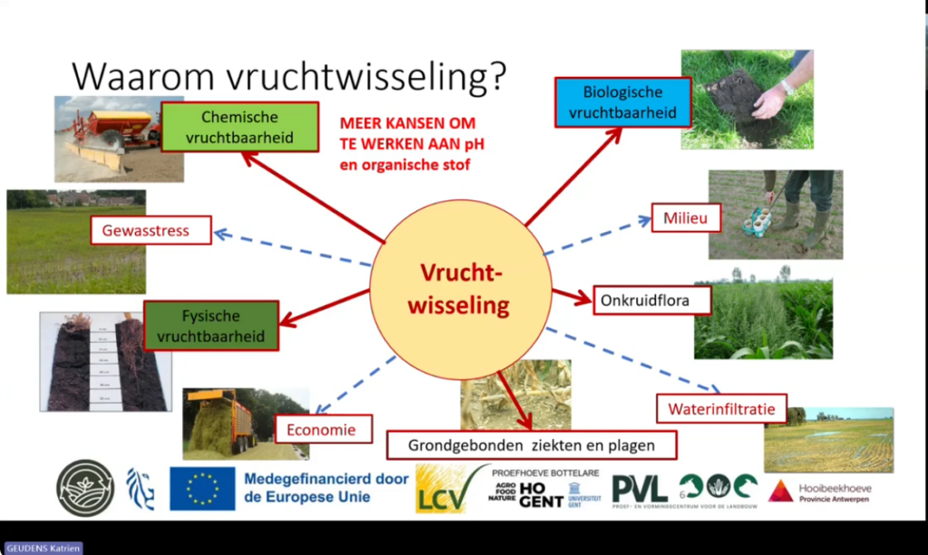 Vruchtwisseling: voordelen, beperkingen en het wetgevend kader (IPM & GLB) (Katrien Geudens, Hooibeekhoeve – Joos Latré, HoGent.UGent): https://youtu.be/Q9VxrndAHH0